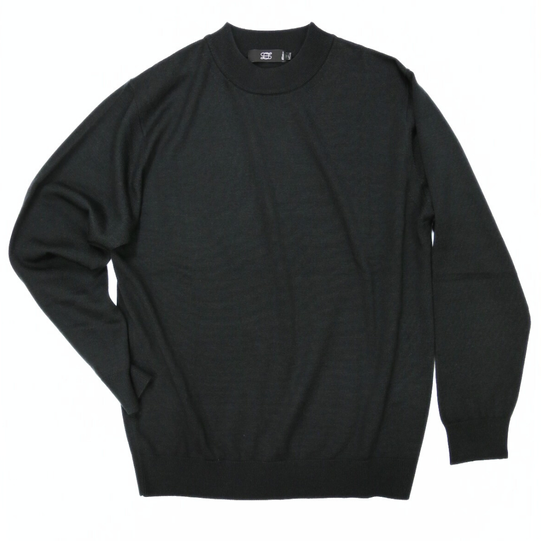 【洗えるニット】 モックネックハイゲージニットセーター 長袖 ブルーグレー