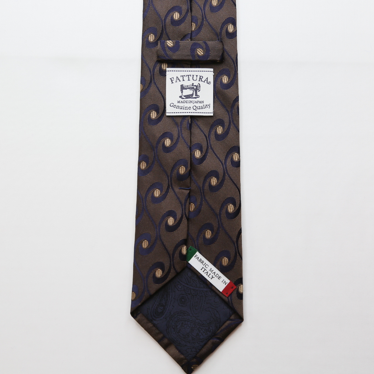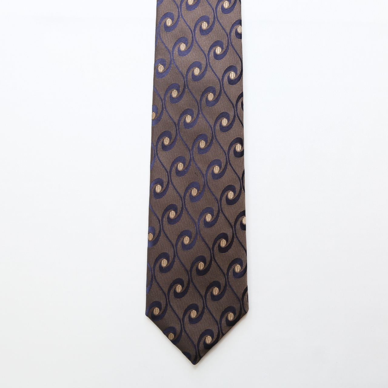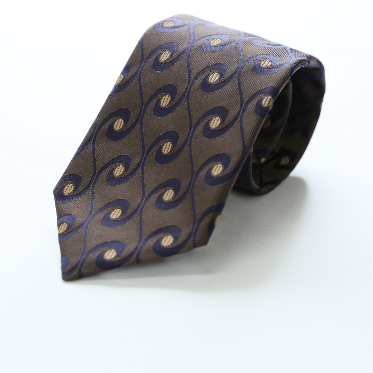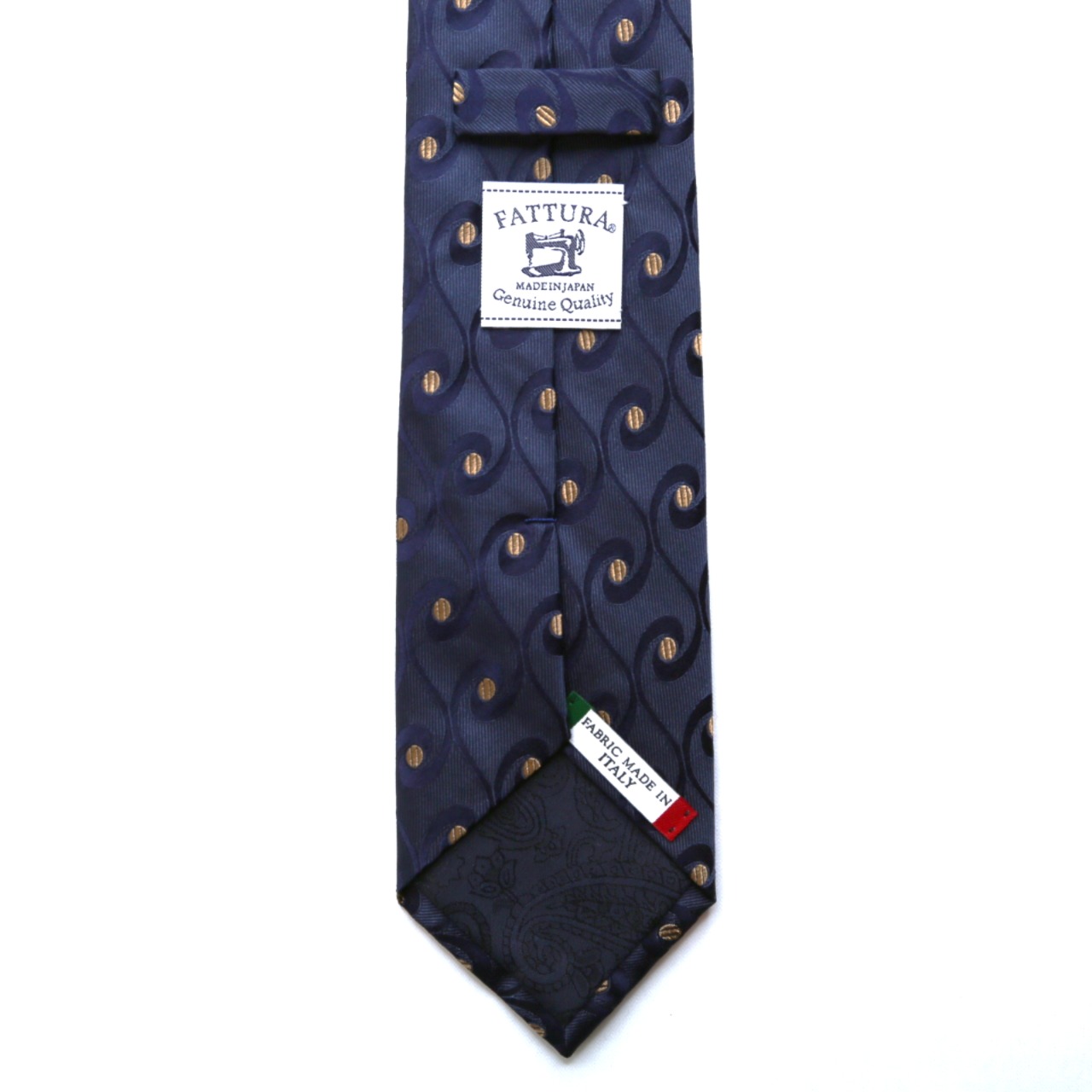 独特なドット×ウェーブ柄を生地全体に散りばめた総柄ネクタイ。