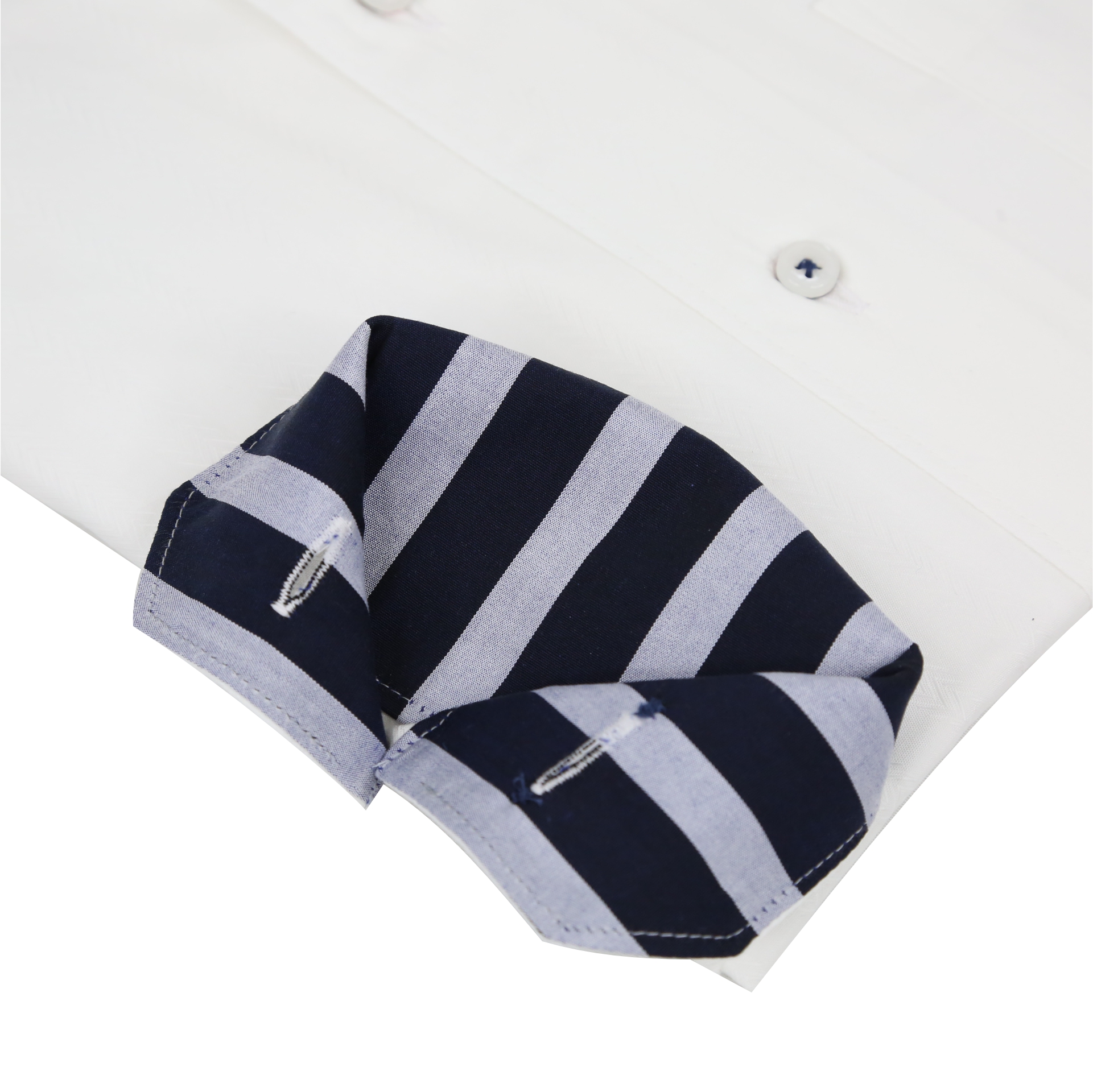 台衿、衿裏を共生地にしたデザインシャツ。スリムフィットボディ。 【原産国】日本製 【サイズ】S・M・L 注意事項:モニターの発色具合によって色が異なって見える場合がございます。