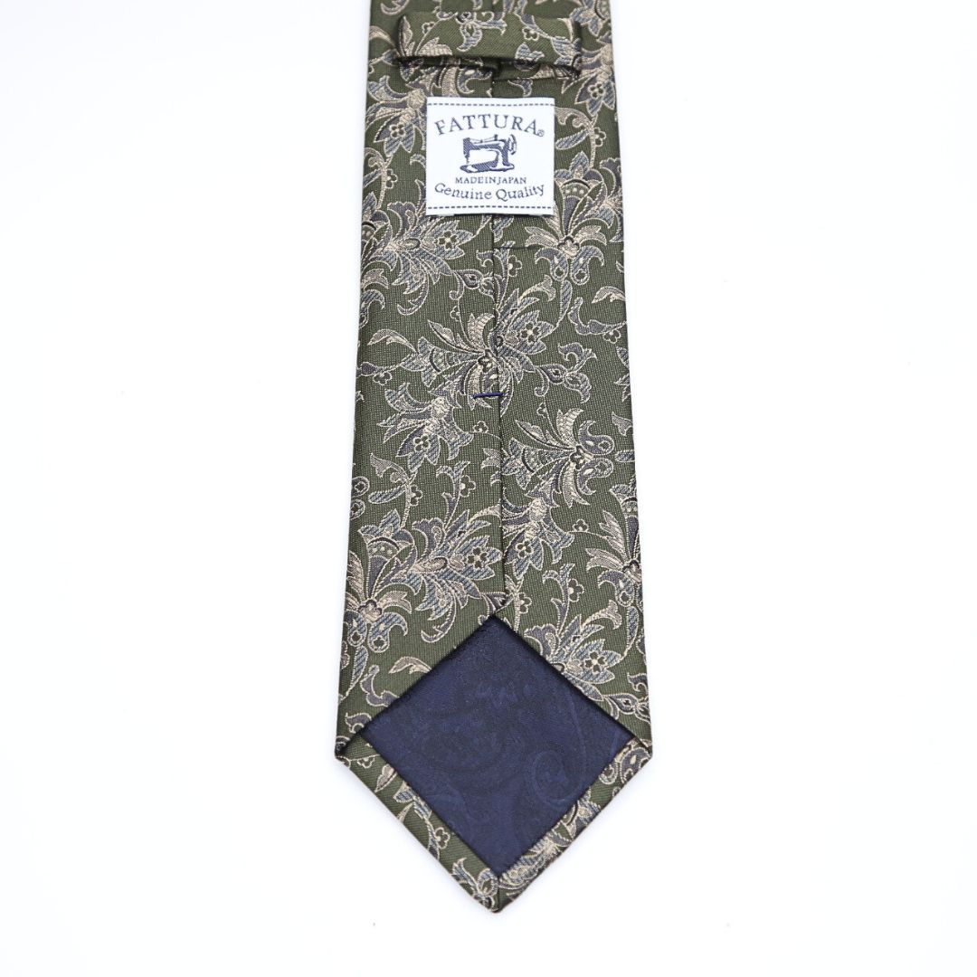 創業100有余年の京都・西陣織老舗工場の数あるアーカイブデザインからピックアップし現代風に配色。極細のシルク糸を贅沢に使用し、高密度で織り上げることでしか表現できない贅沢なネクタイ生地を使用。その生地を京都の老舗工場でベテラン職人が1本1本丁寧に仕上げた高級ネクタイです。