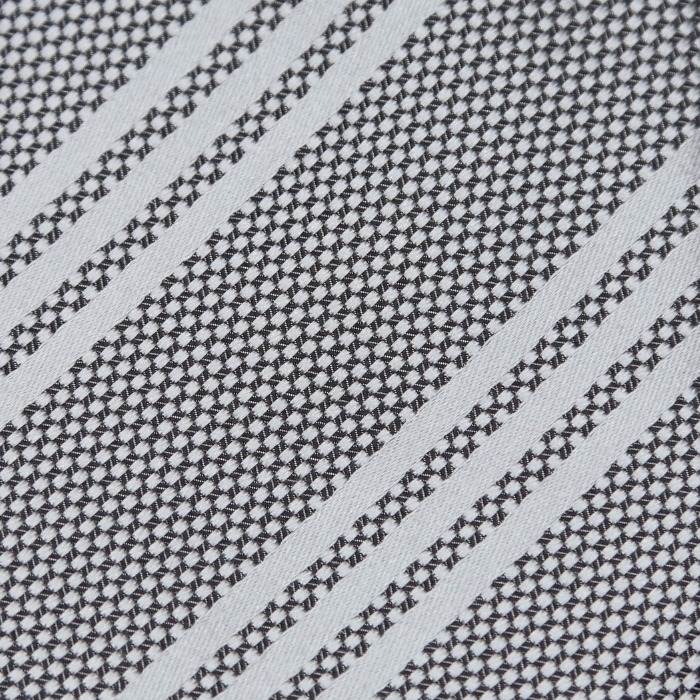 幅広いシーンで活用できるストライプ柄の無地ネクタイ。富士山の湧き水で清められた糸が織りなす、優美な色合いと風合いが特徴。柔らかさと張りを兼ね備えたシルク100%ネクタイです。
