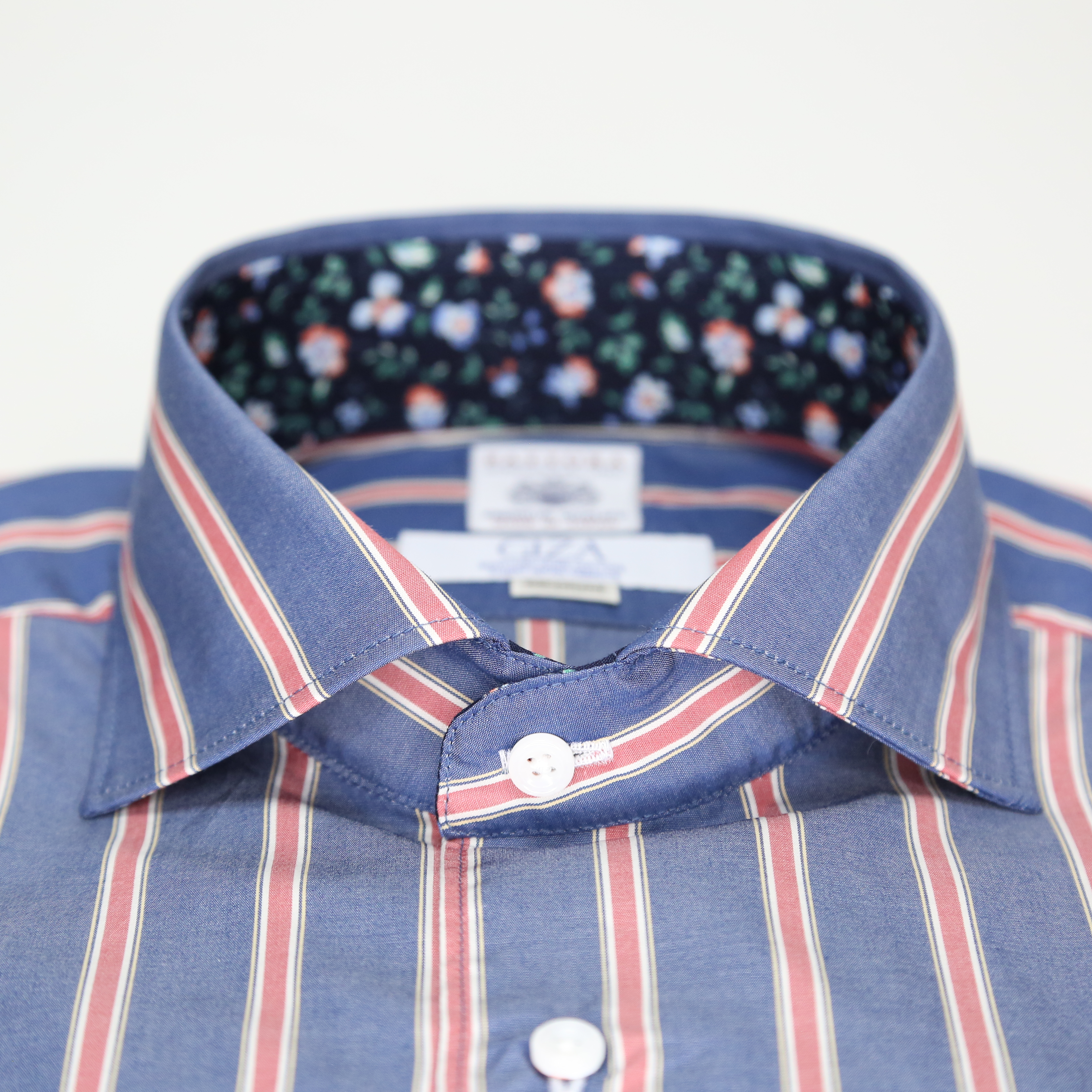 ワイドカラー、衿裏・カフス裏を別布で仕立てたデザインシャツ。ファッションアイテムとしてビジネスやカジュアル、オンオフで幅広く活躍します。 【原産国】日本 【サイズ】M・L・LL 注意事項:モニターの発色具合によって色が異なって見える場合がございます。