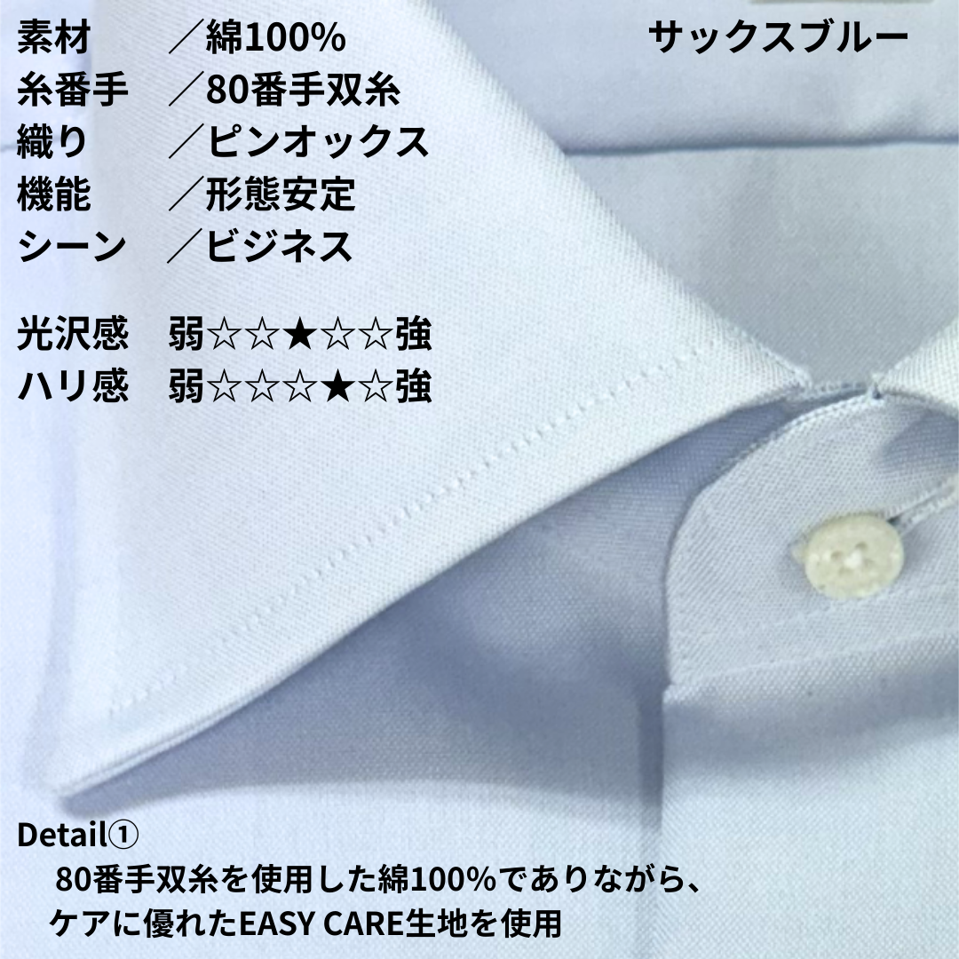 Detail① 80番手双糸を使用した綿100%でありながら、ケアに優れたEASY CARE生地を使用