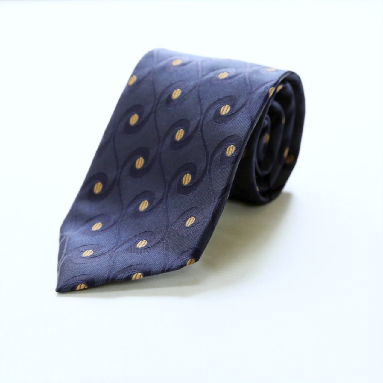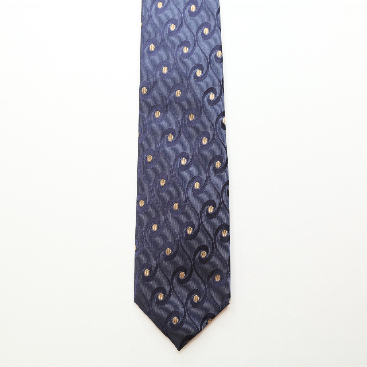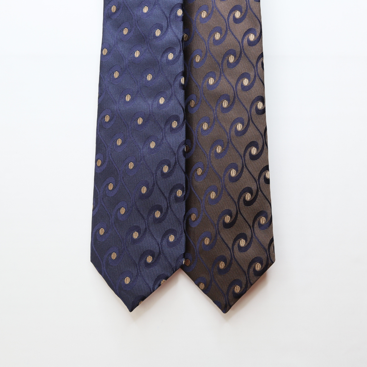 独特なドット×ウェーブ柄を生地全体に散りばめた総柄ネクタイ。